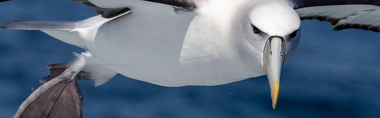 Kaikoura is a breath-taking place where snow-iced mountains reach down to a turquoise sea. The continental shelf drops abruptly very close to shore, resulting in upwellings of nutrients from the sea’s depths, attracting a rich and abundant marine life. An excellent opportunity for bird lovers and generalists alike is a seabird excursion, where one can see flocks of cawing albatrosses (4-5 species), and numerous petrels and shearwaters, just meters from the boat.