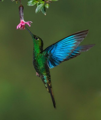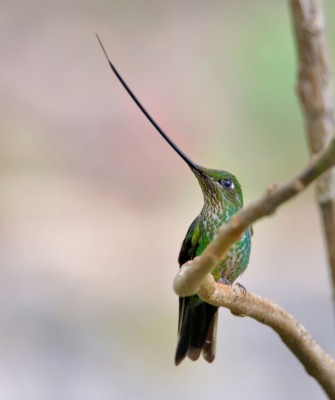 In the afternoon, we head to the Los Andes Bird Observatory, which is a great location for the photographers in the group! Located on a farmhouse near the buffer zone of Chingaza National Park, the feeders and gardens here are frequently visited by a variety of species. Birds we may see here include the dazzling Blue-throated Starfrontlet, the large Great Sapphirewing, Shining Sunbeam, and the very long-tailed Black-tail Trainbearer, and Sword-billed Hummingbird, which has the longest bill compared to its body size of any bird in the world. Muisca Antpitta, which is mostly endemic to Colombia, is also possible here.