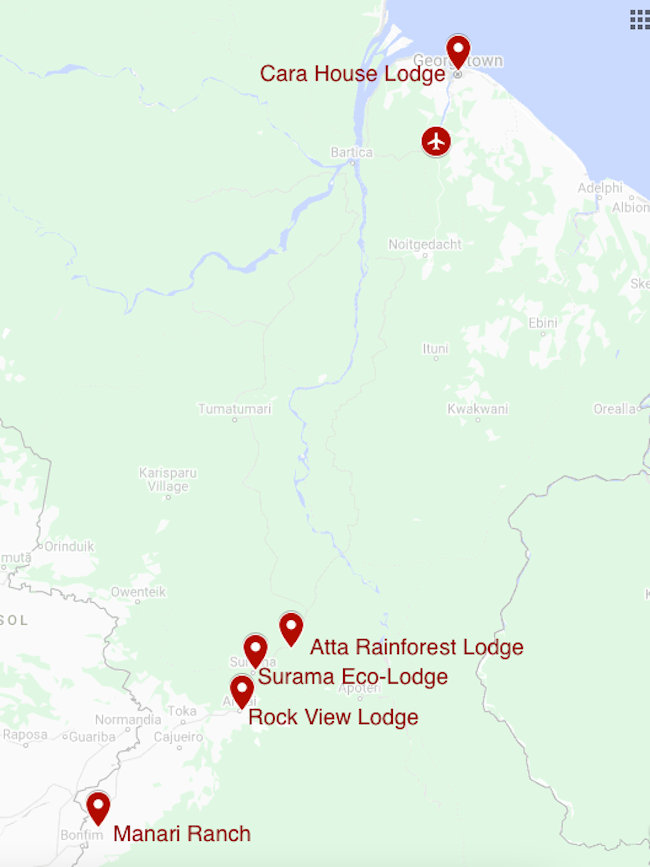 Merlin App – Guyana Pack. A phone-based birding app from Cornell University Laboratory of Ornithology. Before departing the U.S., download the app for free, then from within the app, download the “pack” for Guyana.