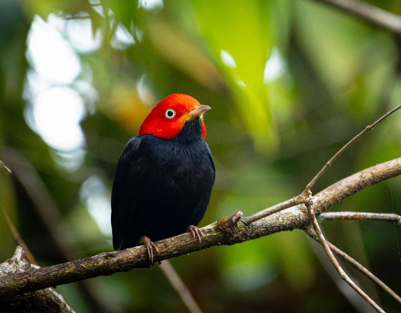 From there, we check out a new road that cuts through Tierra Oscura. This road allows access to many birds because it runs along the edge of an old forest. As we walk, we search for Purple-throated Fruitcrow, Black-chested Jay, Pale-billed and Lineated Woodpeckers, Pied Puffbird, Black-capped Pygmy-Tyrant, both Montezuma and Chestnut-headed Oropendolas, Keel-billed and Yellow-throated Toucans, Cocoa Woodcreeper, and many more species. We also keep an eye out for Green-and-black Poison Dart Frog, various butterflies, and possibly even sloths.