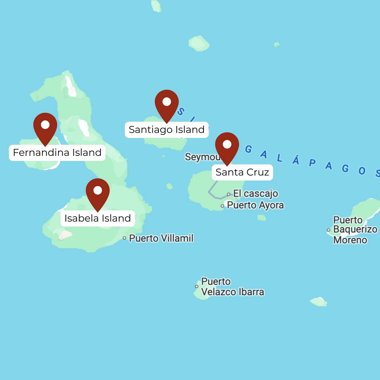 We cruise amongst some of the best islands in the chain, including Santa Cruz, Isabela, Fernandina, Rabida and Santiago.