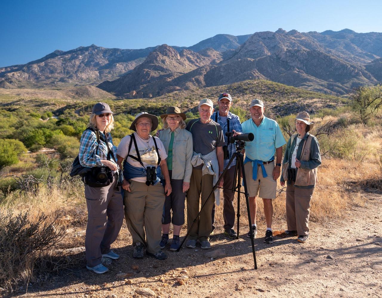 After a midday meetup at the Tucson airport, our birding begins with gusto at Sweetwater Wetlands, one of Tucson’s many birding hotspots, and a perfect start to an exciting tour. Harris’s Hawk rest in tall eucalyptus trees, Red-tailed Hawk patrol the dry river basin, and Cooper’s Hawk control the wetlands. Song Sparrow and Abert’s Towhee hide in thick stands of salt brush. Ducks float past cattails and willows as Red-winged, Yellow-headed, and Brewer’s Blackbird are on the wing. One year, we had a surprise glimpse of a Bobcat on the prowl! This wetland is a true treasure in the heart of Tucson and fourth on the list of hotspots with the most species in Arizona.