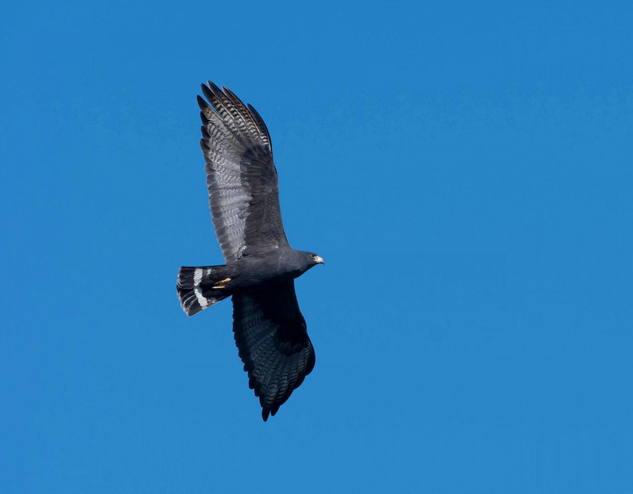 Today is an exciting day! This is our first of three mornings at the International Hawkwatch’s Tubac Hawk Watch. We have an early start in Tucson so we can make it down to Tubac before the first liftoffs of the morning. We don’t want to miss the possible steady stream of Common Black Hawks. The Common Black Hawk is generally scarce, and can be hard to find since it lives along riparian corridors and spends much of its time perched, soaring briefly only in the mornings. Arizona is the best place in the U.S. to see this summer visitor from the tropics. Along with the Common Black Hawk, we also keep our eyes peeled for Zone-tailed Hawk and Turkey and Black Vultures.